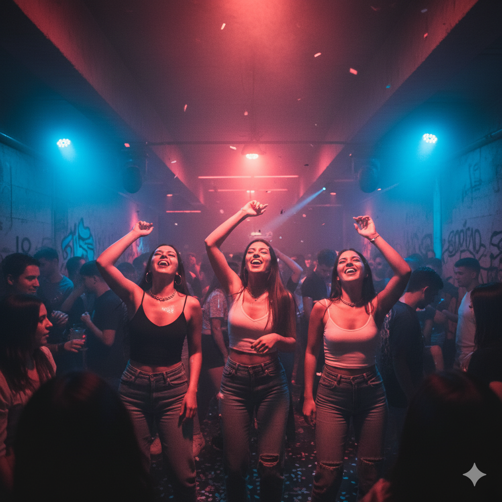Tucked away in a basement in Provenza, the club’s raw, gritty aesthetic is central to its identity. The moment you descend the stairs, you’re hit with the heavy red and black tones, the pulsing neon, and the sheer density of the crowd. The club is intentionally dark, hot, and densely packed, creating an edgy, unapologetic atmosphere where the only thing that matters is the music. This isn’t a place to stand around; it’s a place to get lost in a sea of people who are all there for one reason: to dance.