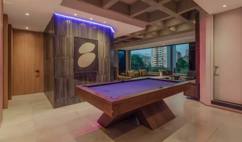 Experience the pinnacle of urban loft living at Casa Oded #2, a spectacular 2,500 sq ft apartment in the heart of Medellín's coveted Provenza neighborhood. This designer residence blends industrial-chic elements like exposed brick and concrete ceilings with warm, luxurious wood finishes. The expansive open-plan living area features a custom billiard table and flows seamlessly onto a 180-degree balcony with breathtaking city views. Indulge in ultimate relaxation with two private jacuzzis—a large 6-person spa on the main terrace and an intimate 2-person jacuzzi in the master suite. With four impeccably designed en-suite bedrooms, daily cleaning, and 24/7 security, Casa Oded #2 offers an unparalleled hotel-service experience, just steps from the city's finest dining and nightlife.