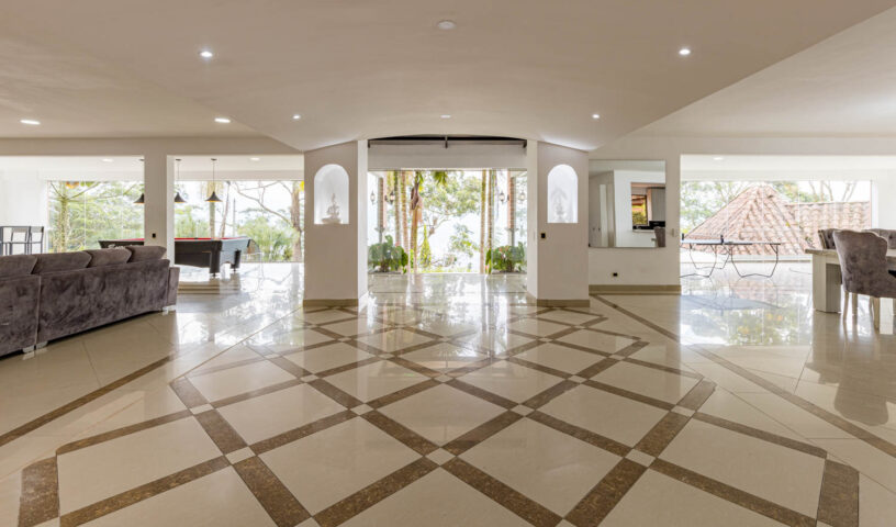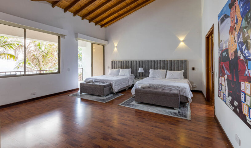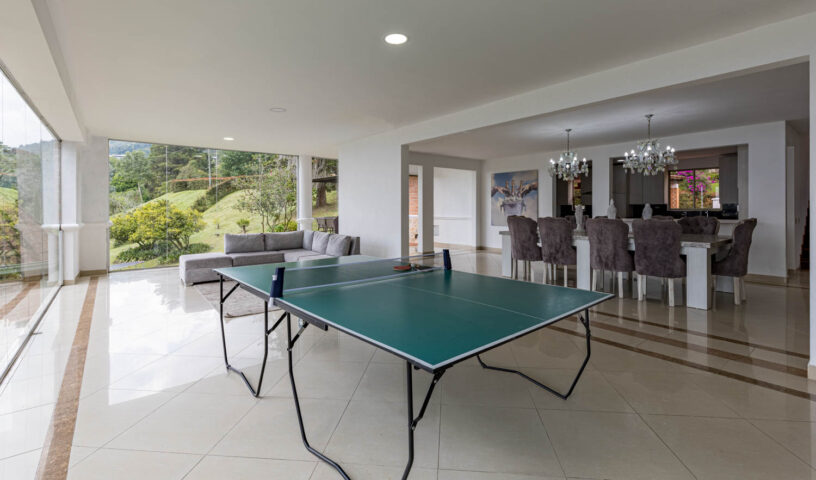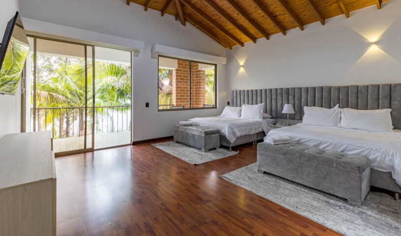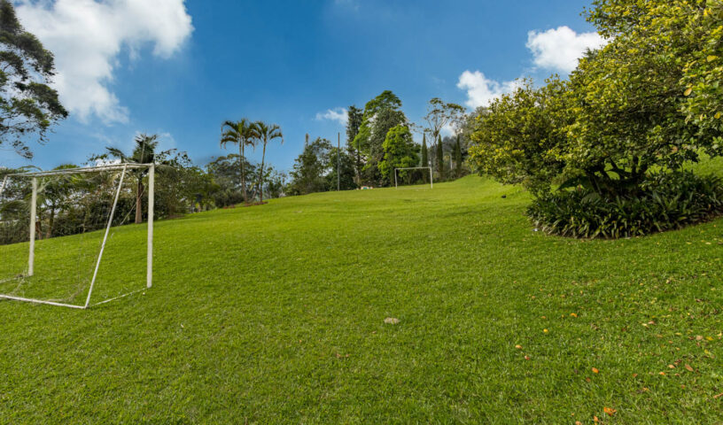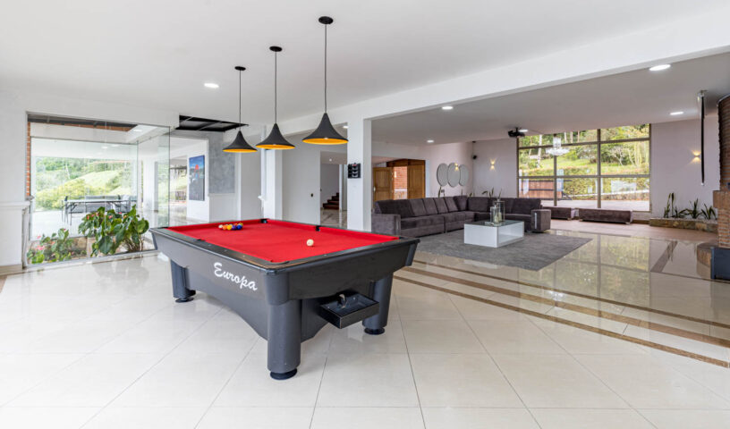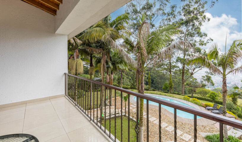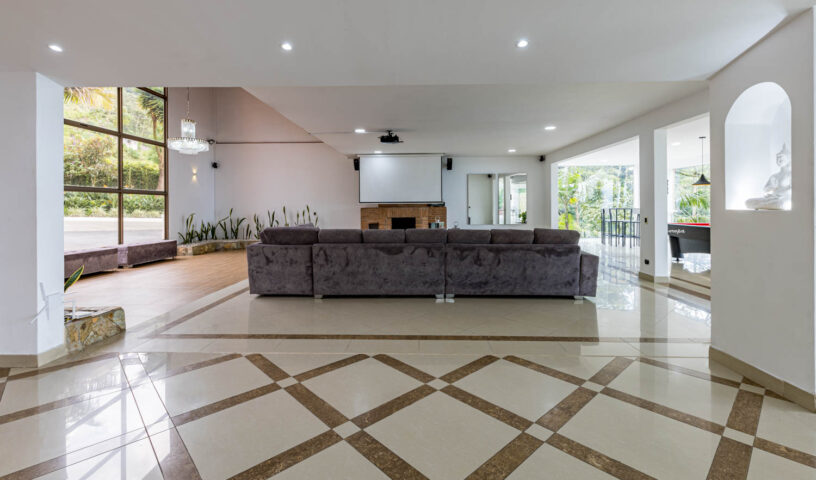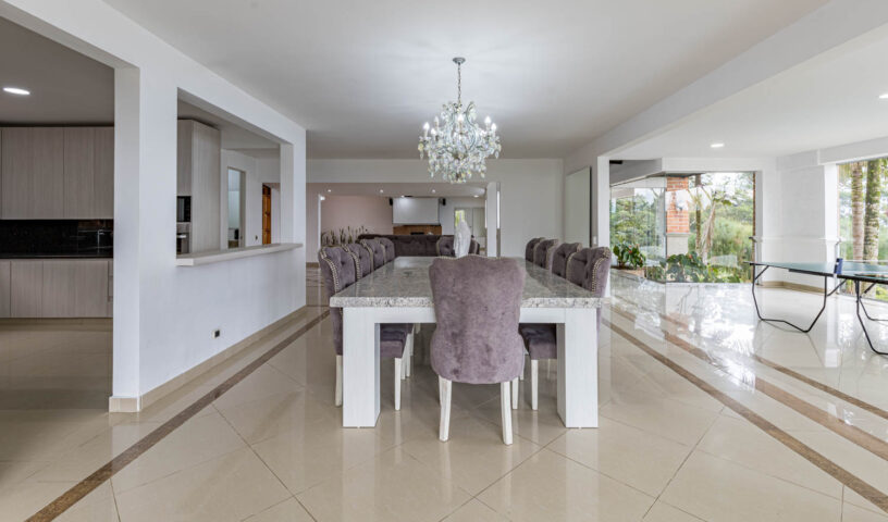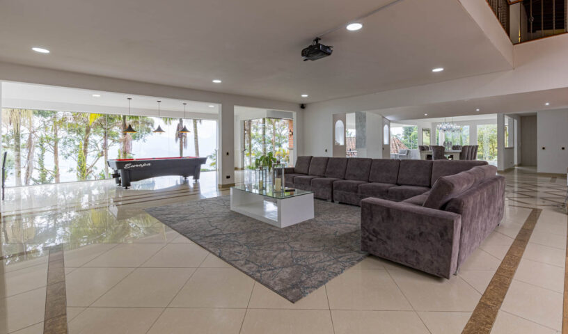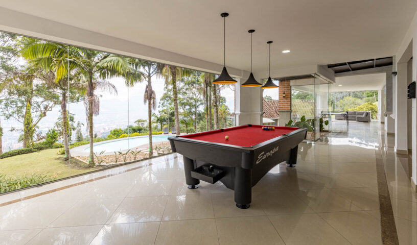 An expansive and private hillside estate, Hacienda La Vista offers an unparalleled resort-style experience in the exclusive sector of Loma del Chocho. This magnificent property is an entertainer's dream, featuring vast, lush grounds that include a private soccer field. Inside, the grand, open-plan living spaces are adorned with high-end finishes, offering endless amusement with a billiard table , a private cinema , and a dedicated discoteca. Floor-to-ceiling windows frame breathtaking views of the city, which can be enjoyed from the expansive terrace or the stunning poolside deck. With multiple spacious bedrooms and luxurious amenities, this hacienda is the ultimate retreat for large families, corporate events, or celebratory gatherings.