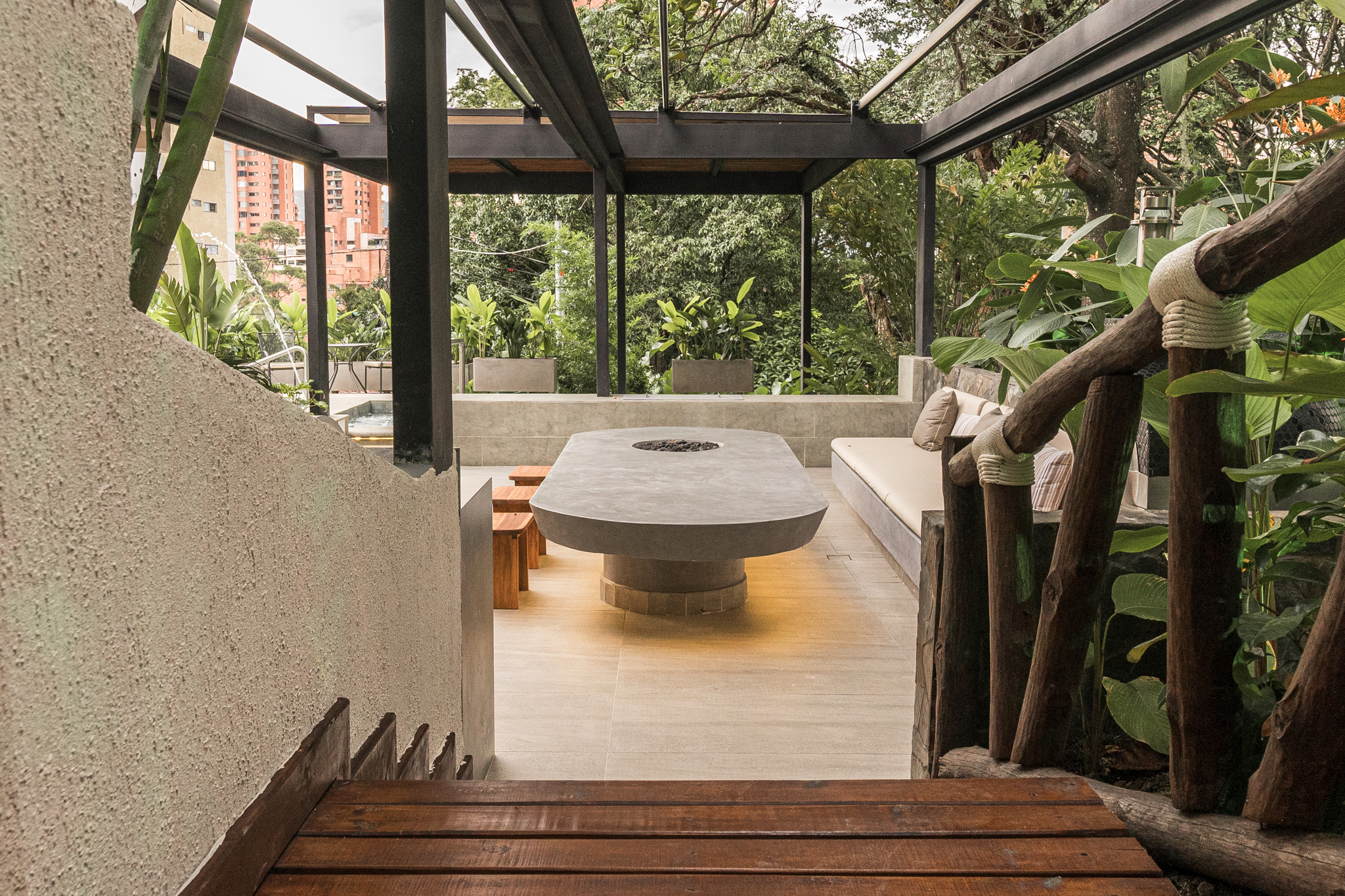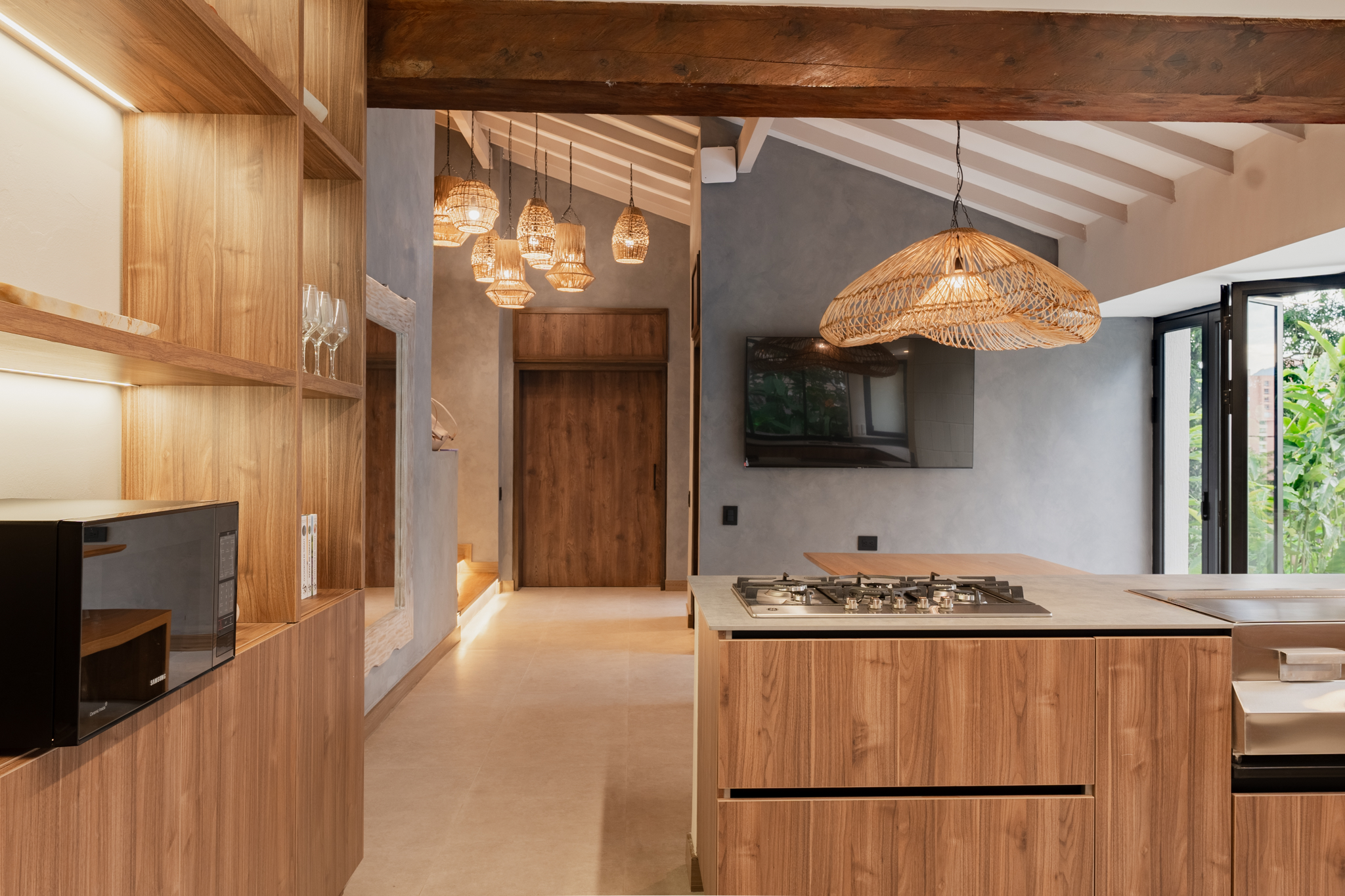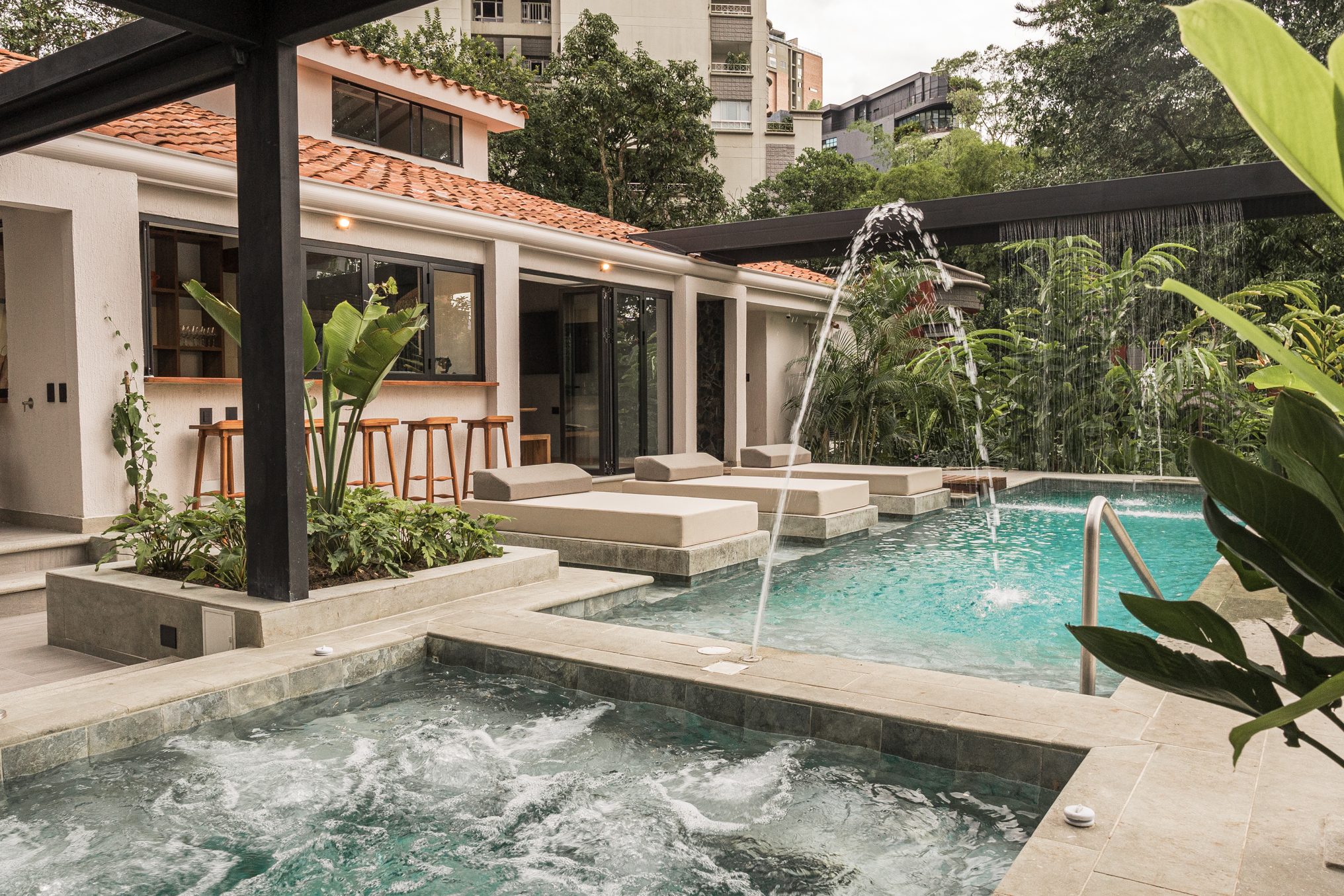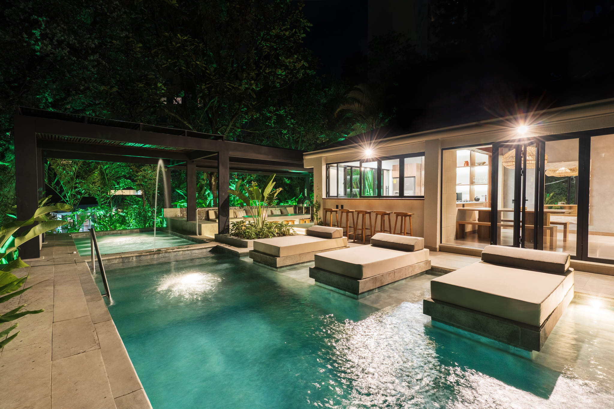 Discover a hidden tropical sanctuary in the heart of Medellin's most fashionable neighborhood, Provenza. This one-of-a-kind villa is an urban resort oasis, surrounded by lush, jungle-like gardens that create absolute privacy and tranquility. The design is a masterpiece of boho-chic luxury, featuring natural woods, stone, and serene living spaces that flow into an incredible outdoor haven. Unwind in the stunning pool with in-water loungers, a jacuzzi, a Turkish bath, or enjoy a session in the dedicated open-air massage area. As evening falls, gather with friends around the fire pit or enjoy a meal from the outdoor BBQ and pizza oven. It is the perfect paradox: a peaceful wellness retreat just steps away from the vibrant energy of Provenza's best restaurants and nightlife.