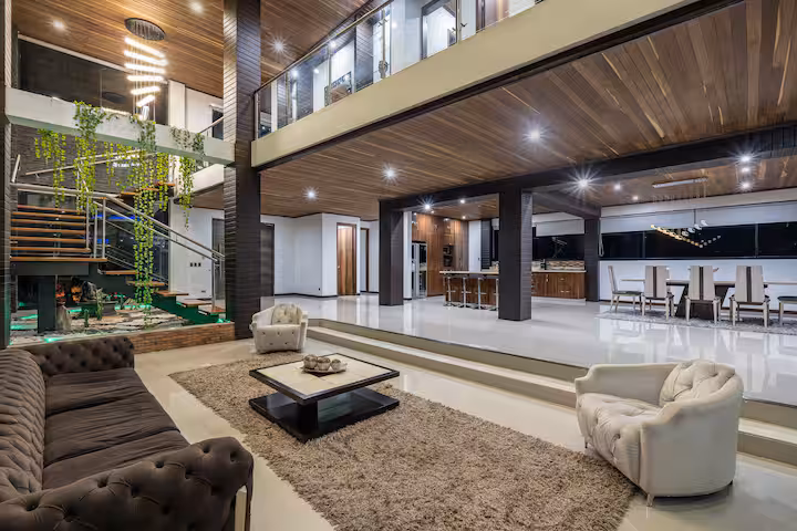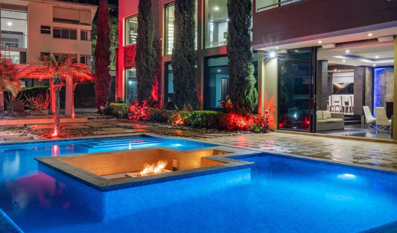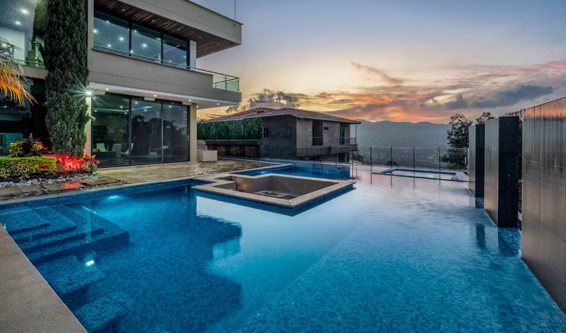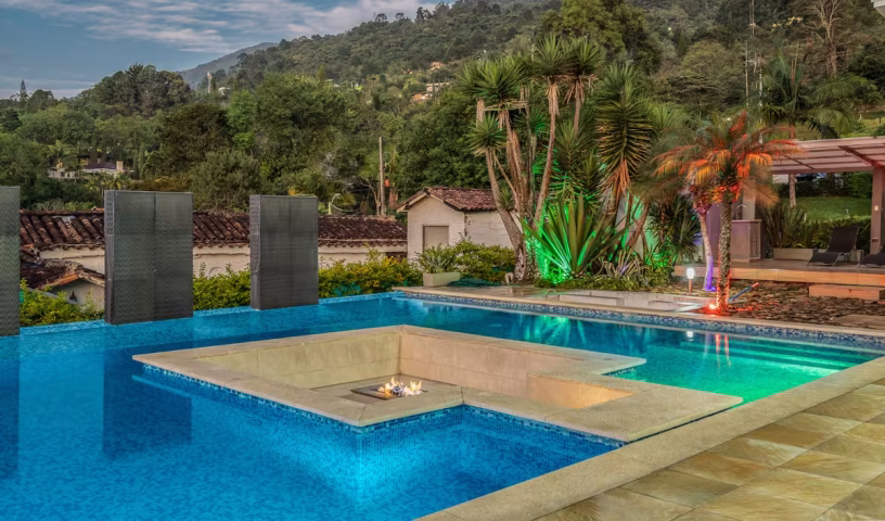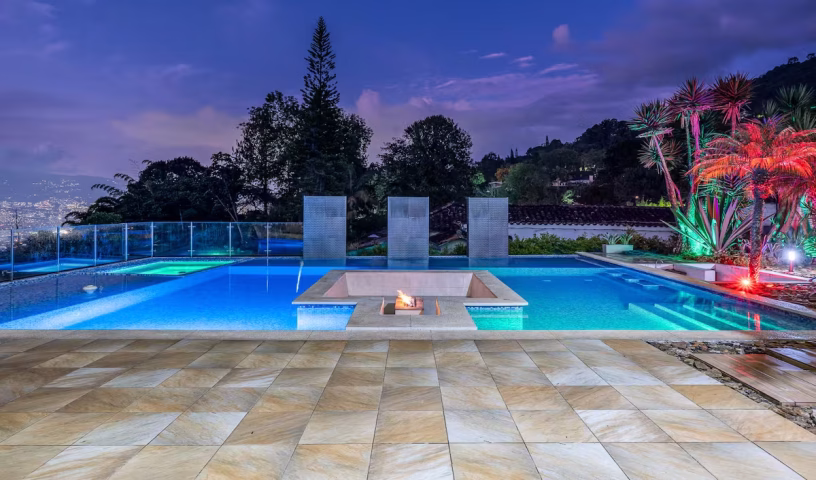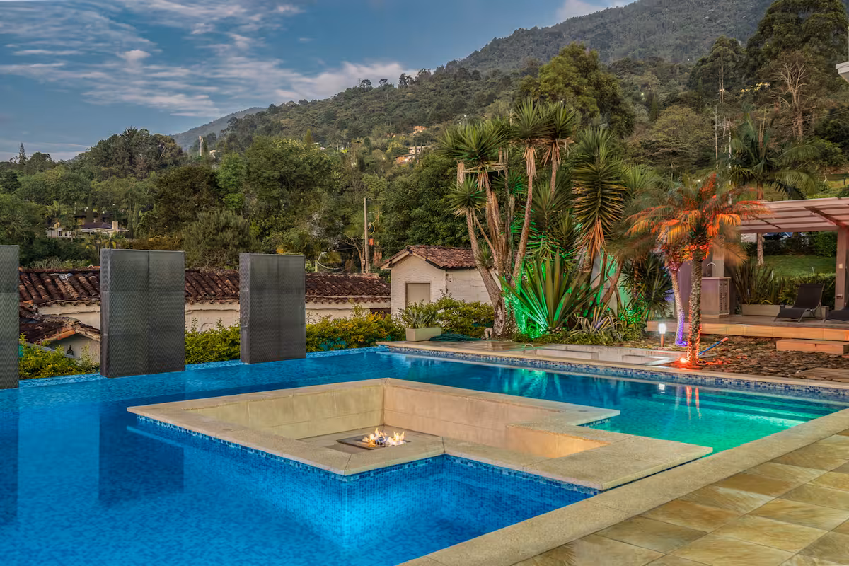 Ascend to the pinnacle of luxury at The Zenith Villa, an exclusive country estate in Envigado designed for the most discerning travelers. This modern masterpiece is an entertainer's paradise, featuring a professional-grade private cinema and a separate, soundproofed disco for unforgettable nights. The heart of the home is a spectacular heated infinity pool with an integrated jacuzzi and a stunning in-pool fire pit, all set against panoramic city views. Indulge in wellness with a private Turkish bath (steam room). Inside, five opulent en-suite bedrooms, a gourmet kitchen, and expansive living areas with rich wood and stone finishes provide unparalleled comfort. This is the ultimate sanctuary for privacy, luxury, and sophisticated entertainment.