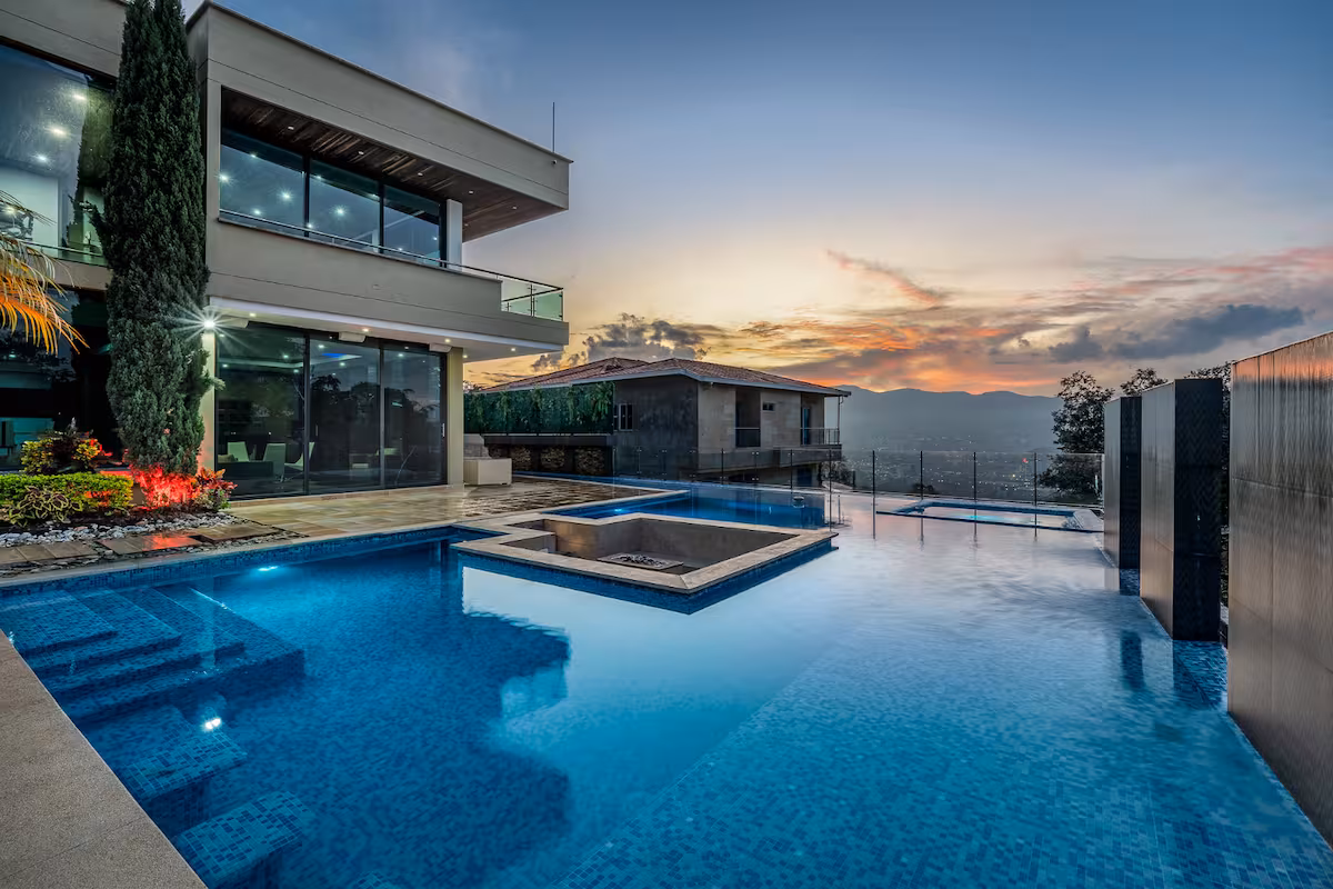 Discover an exclusive sanctuary of modern design and entertainment at Villa Esmeralda. Perched in the prestigious hills of Envigado, this
