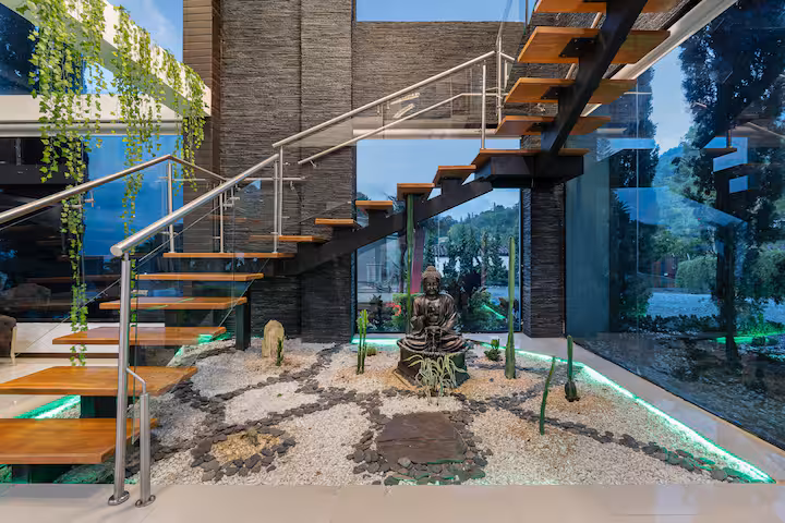An architectural masterpiece nestled on the exclusive Loma del Escobero, this expansive estate blends modern luxury with natural elegance. Soaring,
