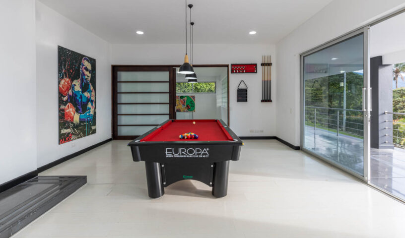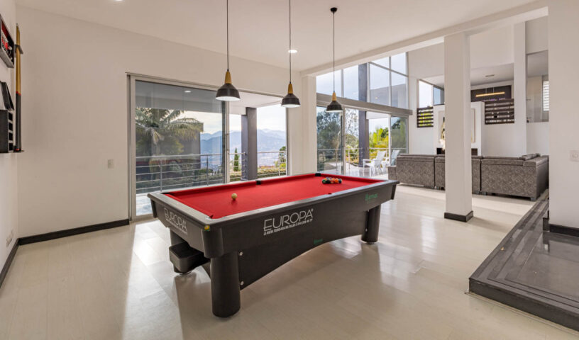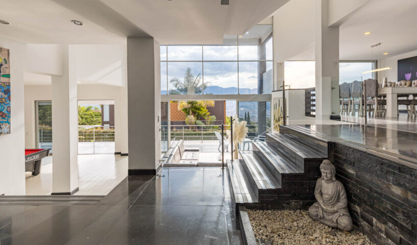 A triumph of modern architectural design, The Viewpoint is a sleek and sophisticated villa where the city of Medellin unfolds at your feet. Located on the desirable Loma del Chocho, this property was built to maximize its commanding views, with multi-level spaces and floor-to-ceiling walls of glass. The open-plan interior is perfect for social gatherings, flowing from a minimalist living room to a game area with a billiard table, and a gourmet kitchen overlooking the valley. Entertain guests in your private disco , enjoy a movie in the cinema room, or watch the sunset from the stunning pool and jacuzzi deck. This is a premier property for those who appreciate bold design and breathtaking vistas.